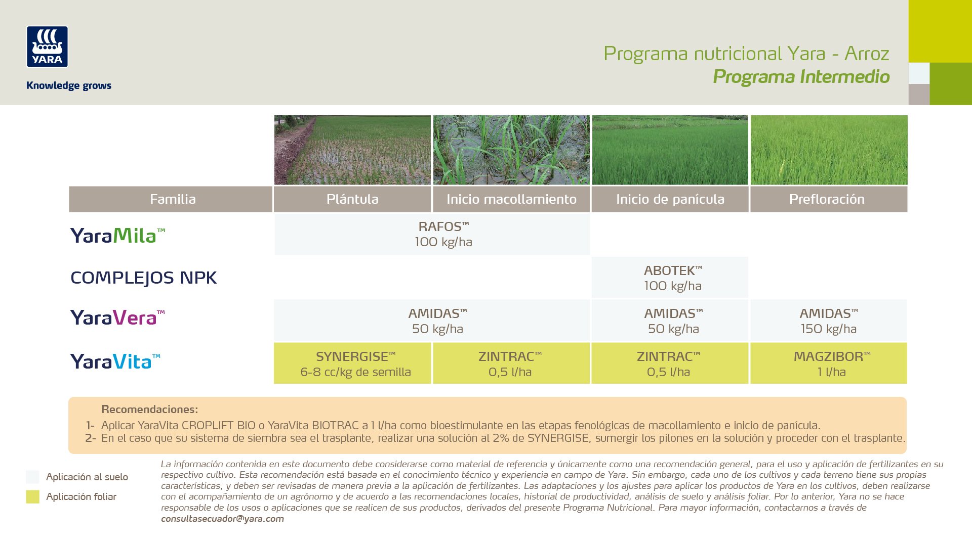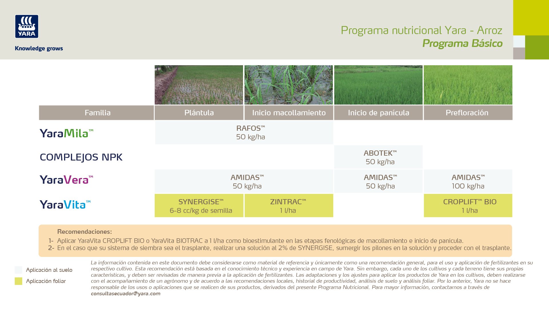 Beneficios del Programa de Nutrición Yara para su cultivo de arroz