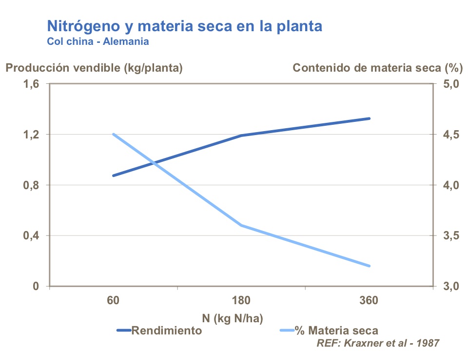 Exceder las cantidades recomendadas de nitrógeno podrá tener un impacto negativo en las propiedades de almacenaje. Puede dar una baja en el contenido de materia seca algo que reduce la calidad de almacenaje de coles, y puede dar enfermedades en los productos almacenados, sobre todo en variedades susceptibles.