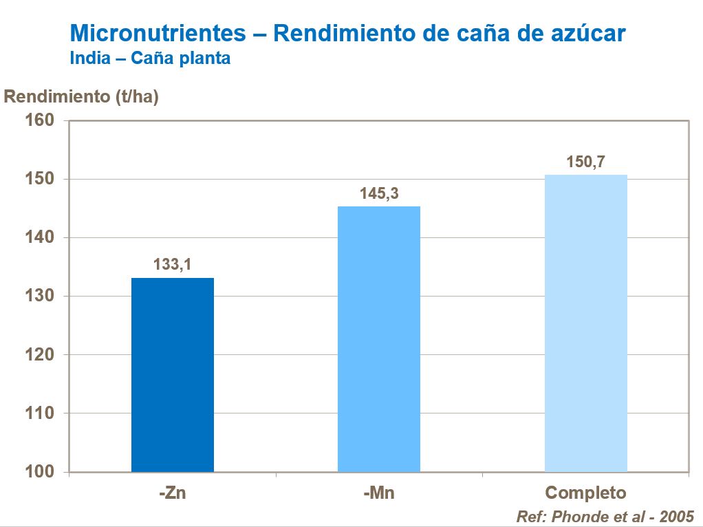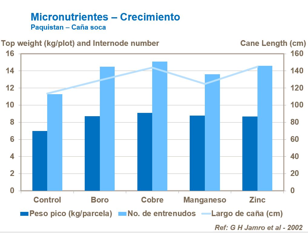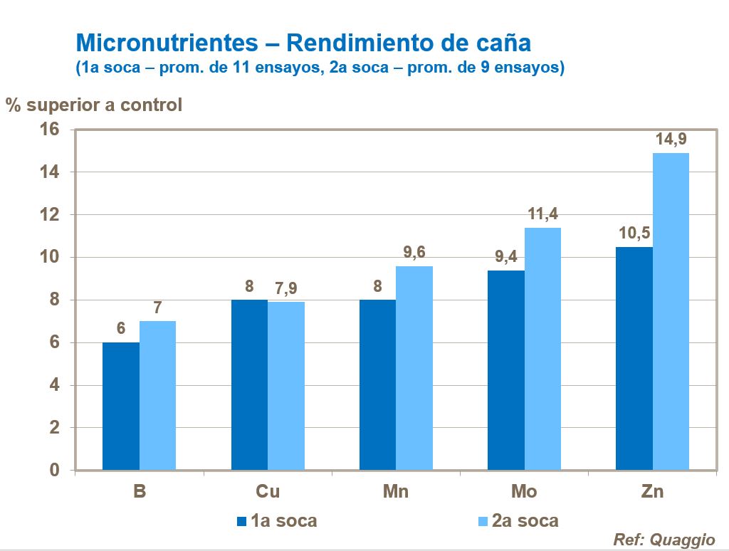 Los cultivos de caña planta, aunque tienen rendimientos mayores, usualmente tienen un mayor suministro de micronutrientes del suelo.