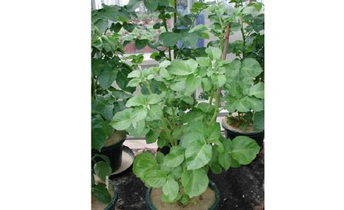 Las hojas son de color verde a amarillo pálido (izquierda) tienen un tamaño reducido y el crecimiento puede sufrir retrasos. Estos síntomas se ven a menudo primero en las hojas jóvenes.