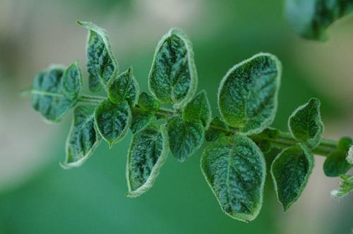 Los bordes de los foliolos jóvenes y totalmente desarrollados se curvan hacia arriba.