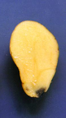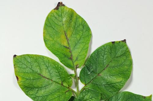 Los tubérculos con deficiencia de potasio muestran manchas negras, cuando se cortan, ennegrecen rápidamente.
