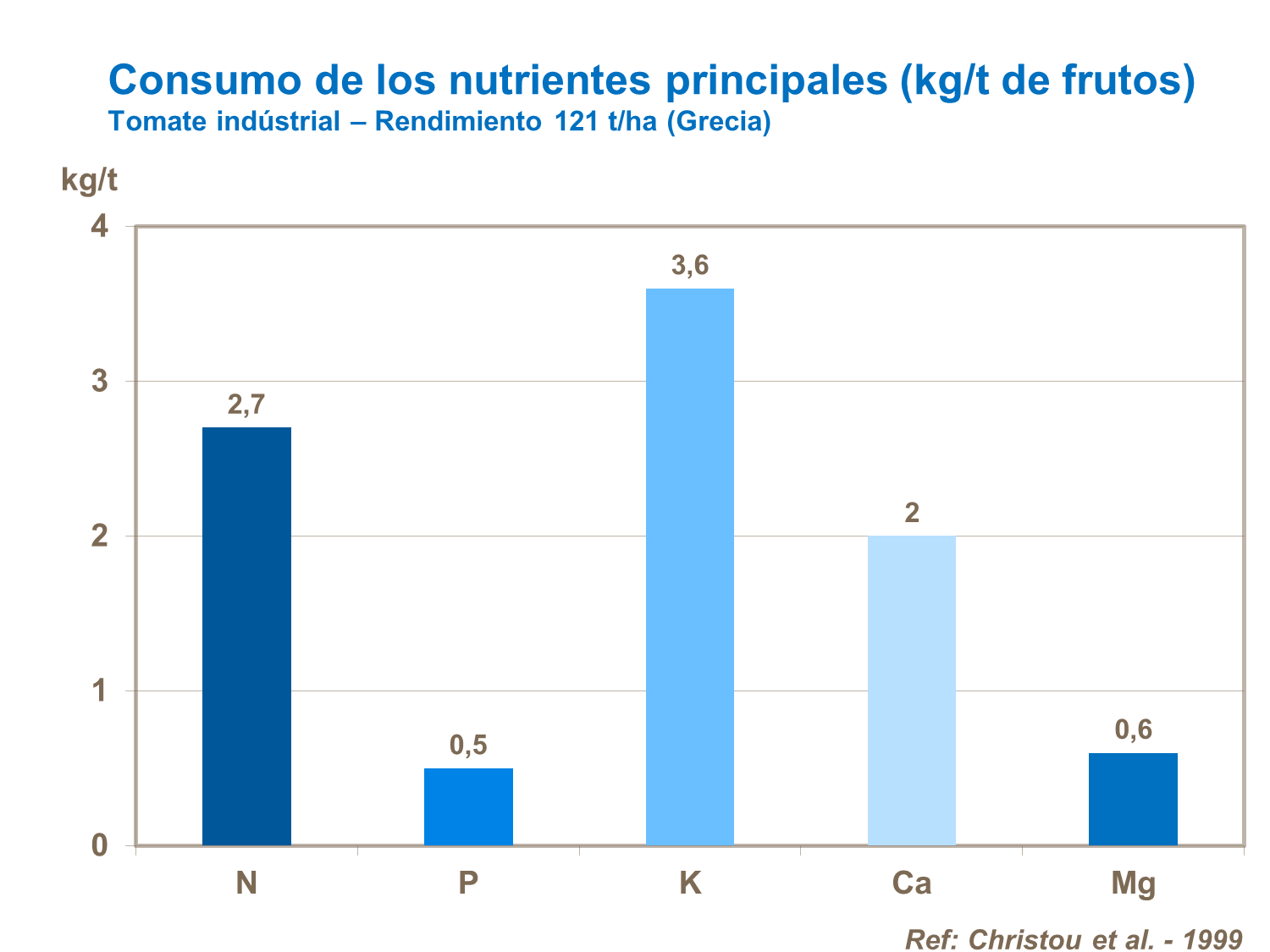 Más de un 60% del nitrógeno, fósforo y potasio absorbidos por la planta, será utilizado en el fruto.